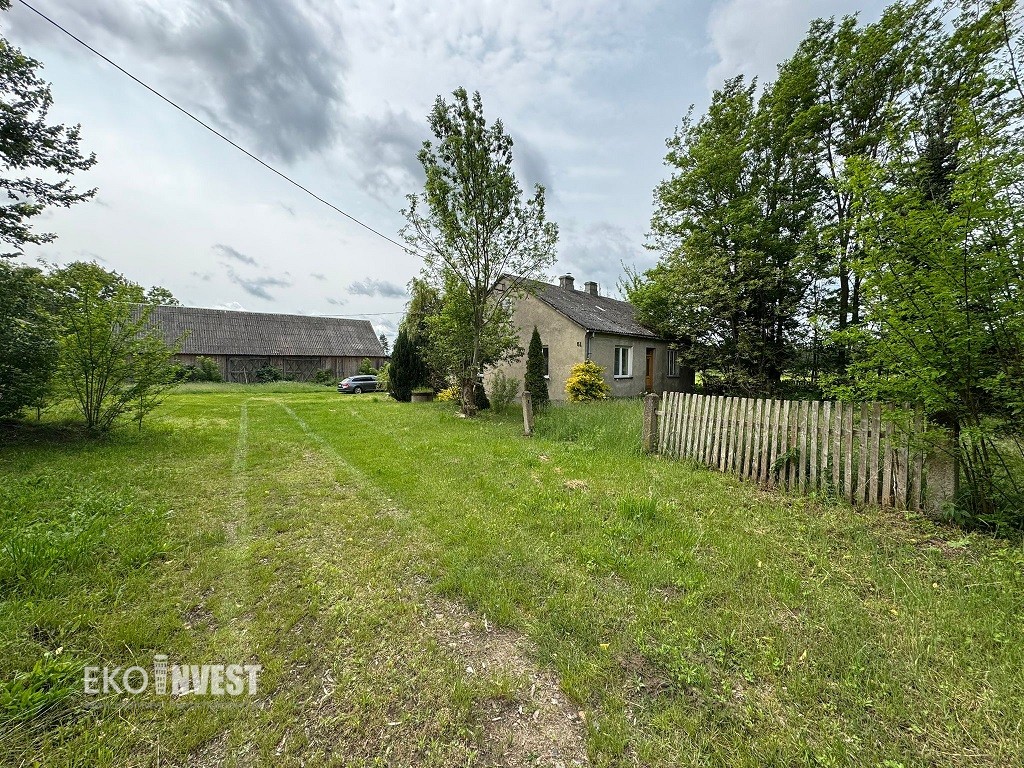 W skład sprzedawanej nieruchomości wchodzą trzy działki rolne o łącznej powierzchni 15,39 ha oraz działka z zabudowaniami o pow.0,4451 m2.Na działce znajduje się dom murowany o pow.99 m2,stodoła drewniana o pow.240 m2,obora murowana o pow.200 m2,garaż drewniany o pow.108 m2.Uzbrojona w wodę z wodociągu prąd ,siła oraz przydomową oczyszczalnię i dodatkowo szambo.