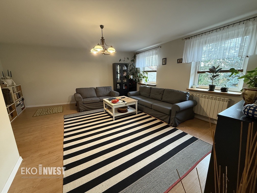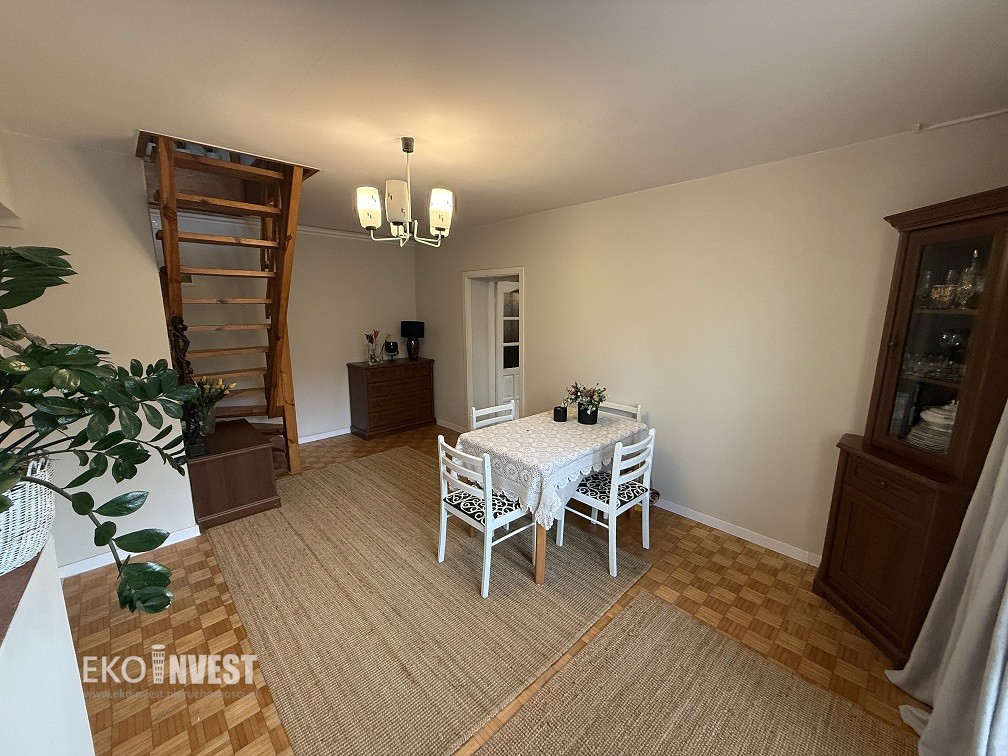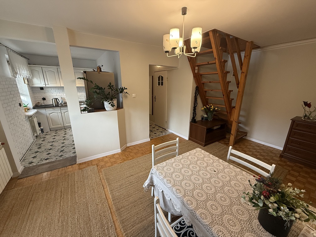 Mieszkanie jest w dobrym stanie, gotowe do zamieszkania bez dodatkowych nakładów finansowych. Na 1 poziomie znajduje się panele z pcv,glazura,terakota, schody wykonane są z litego drewna. W całym mieszkaniu zamontowane są okna PCV .Dodatkowym atutem jest piwnica o powierzchni 3,5 m2. Ogrzewanie i ciepła woda pochodzą z nowego pieca dwufunkcyjnego na gaz Vaillant – zainstalowanego w lutym 2025.