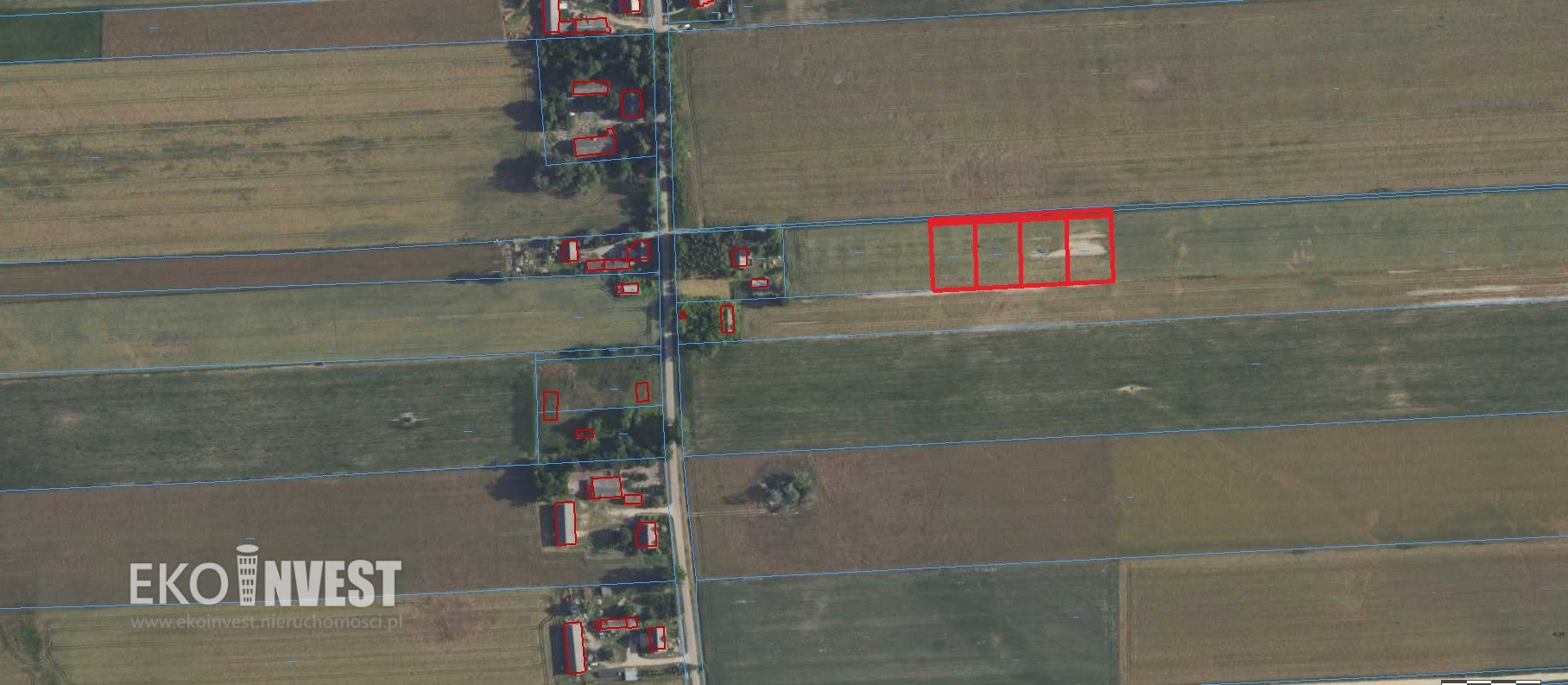 – 1100 m2,1100 m2, 1113 m2,1101 m2, z drogą dojazdową (udział).